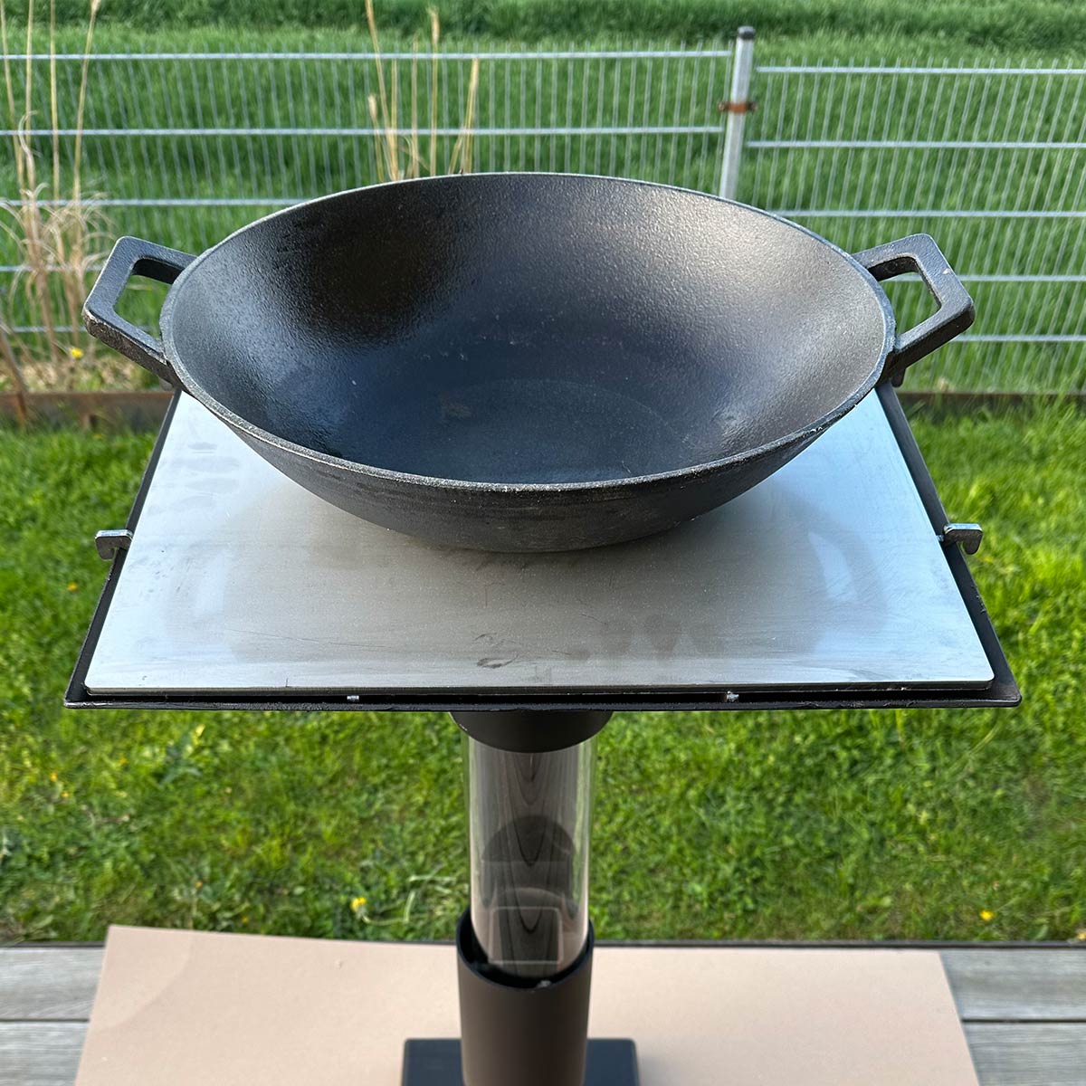 OLAF 300 Hier wird schön gekocht! Das Kombigeräte aus Fackel und Griller ist der Olaf 300. Es kann aufgelegt gegrillt werden, mit Wok Pfanne aber auch gewokt oder sogar frittiert werden. Einfach zu bedienen, einfach zu befeuern, einfach zu genießen. 1l Pellets für 2 h Grillvergnügen.